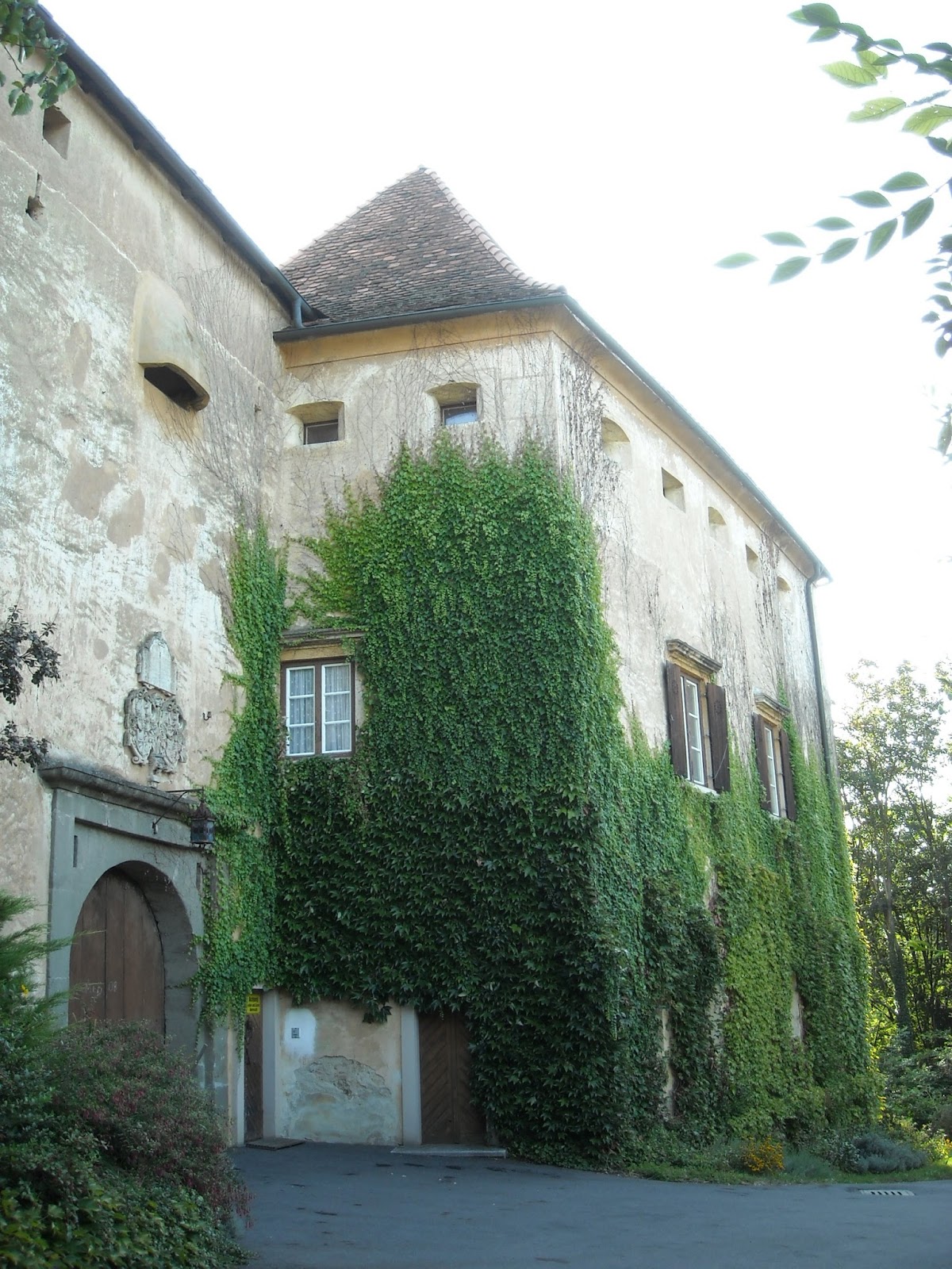 átjutva a minőségi osztrák 57. számú úton gurultunk. Első kastélyként az erdők